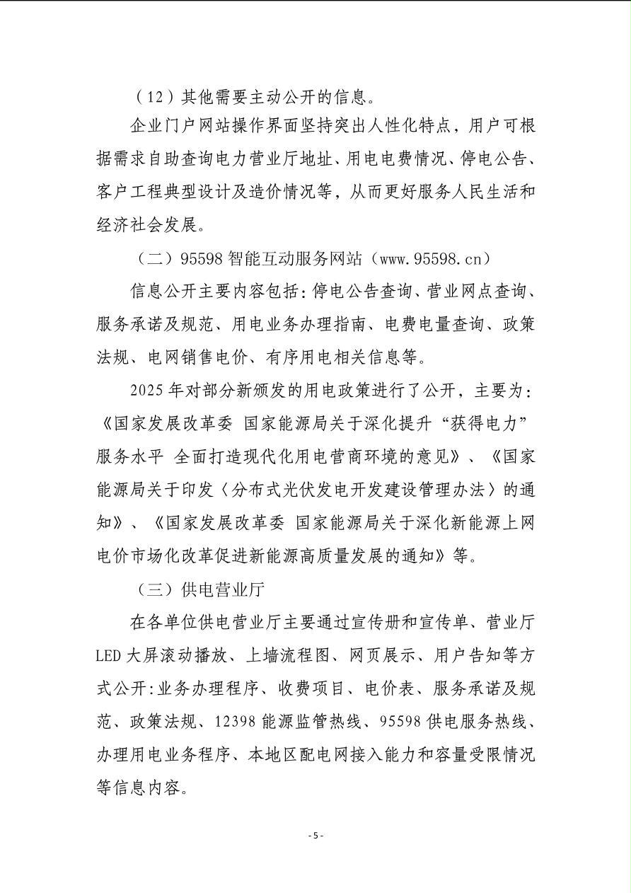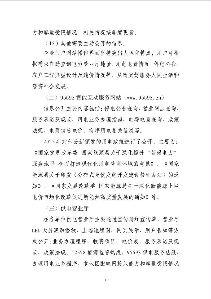 供电服务承诺及供电服务热线、12398能源监督热线等投诉渠道