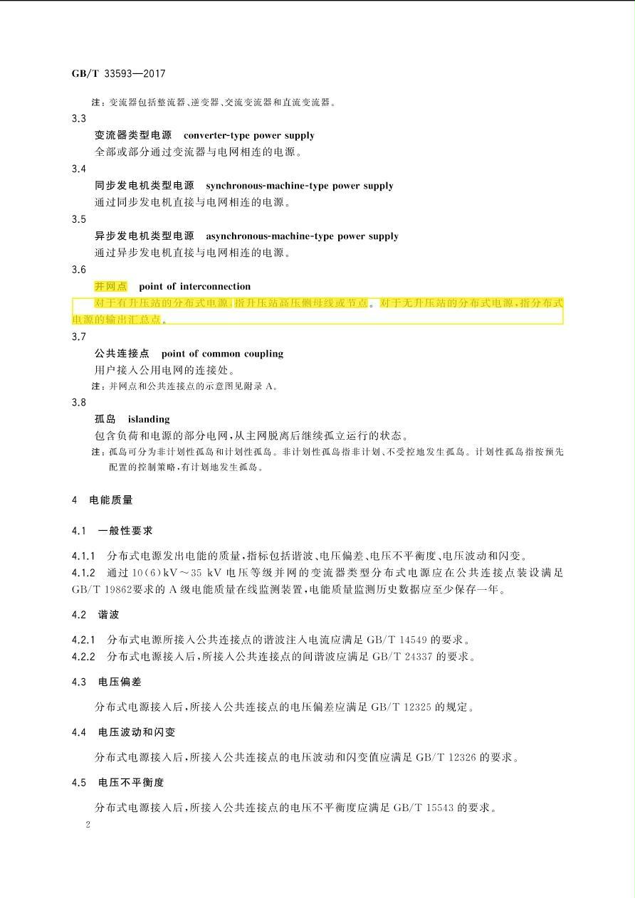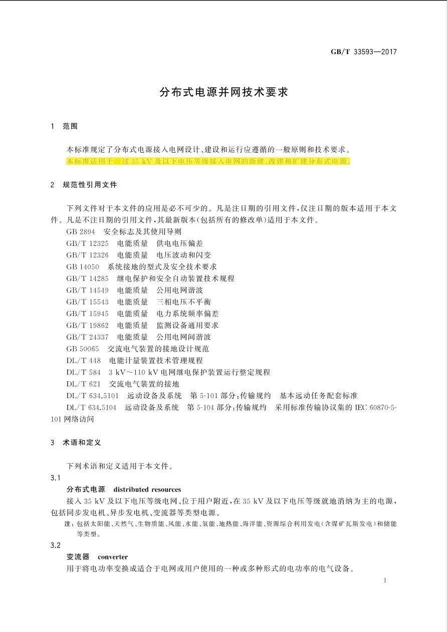 GBT33593-2017分布式电源并网技术要求