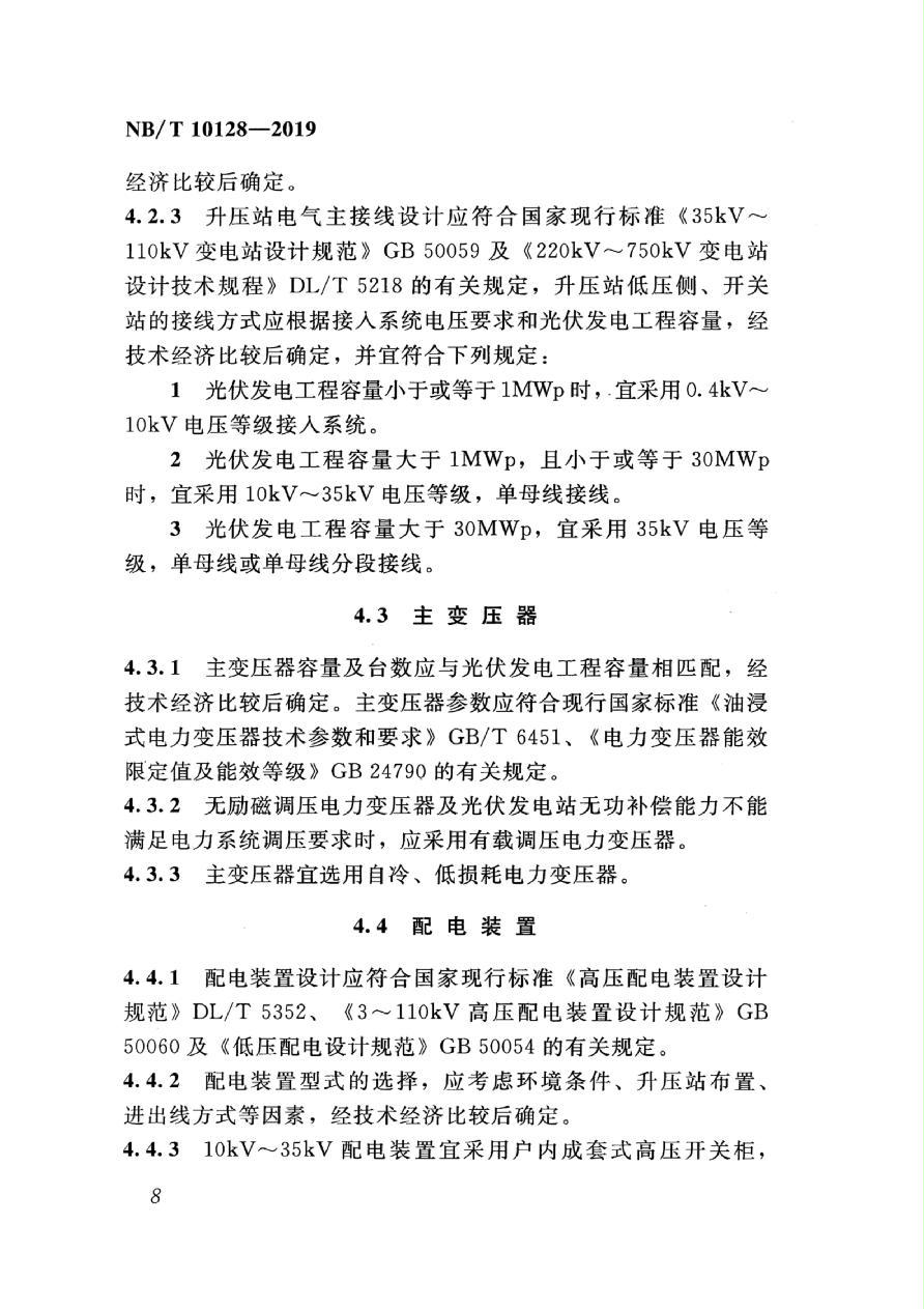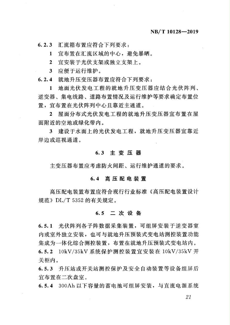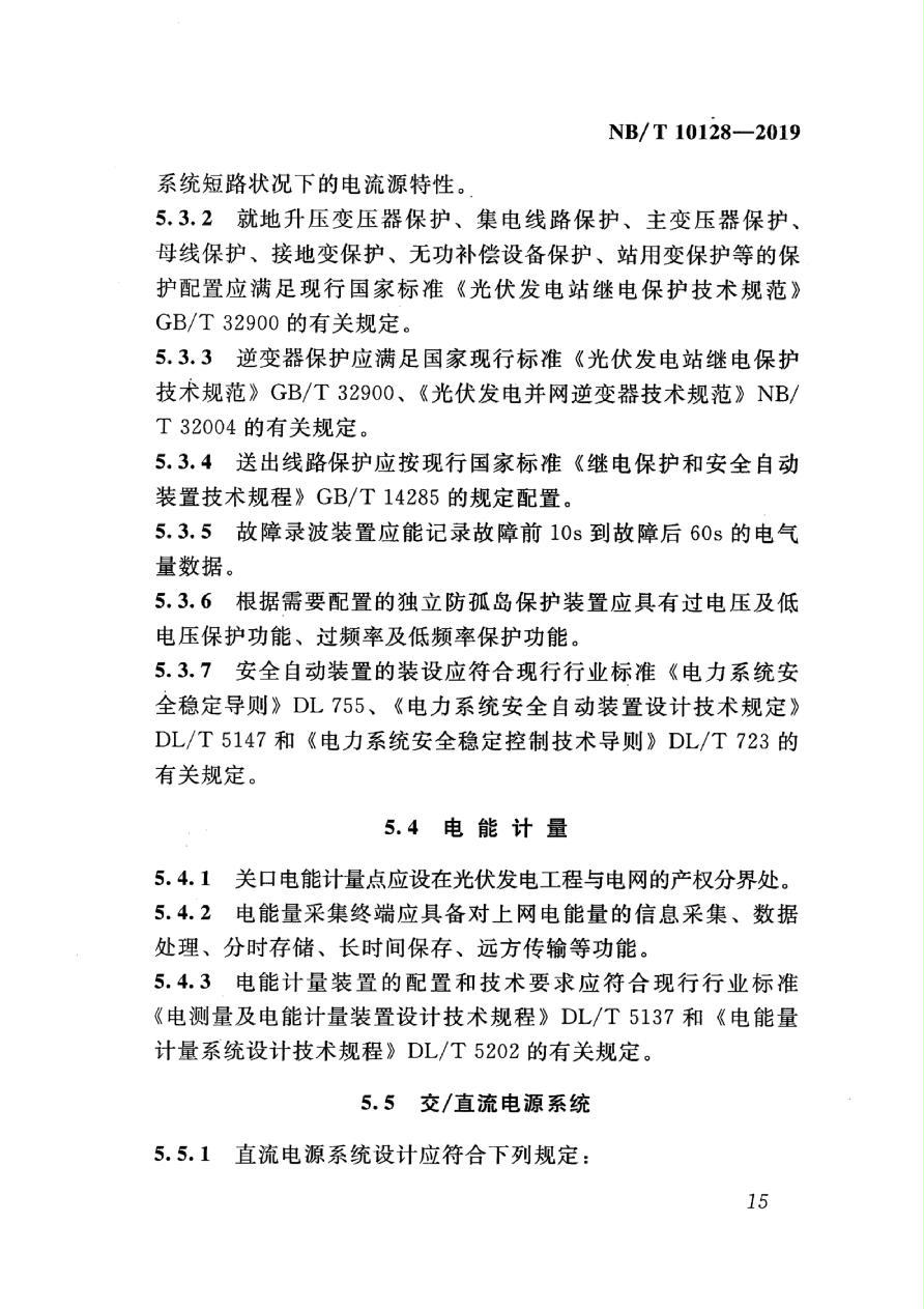NB/T10128-2019《光伏发电工程电气设计规范》