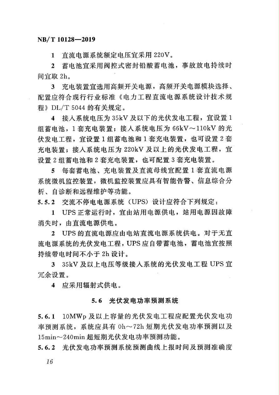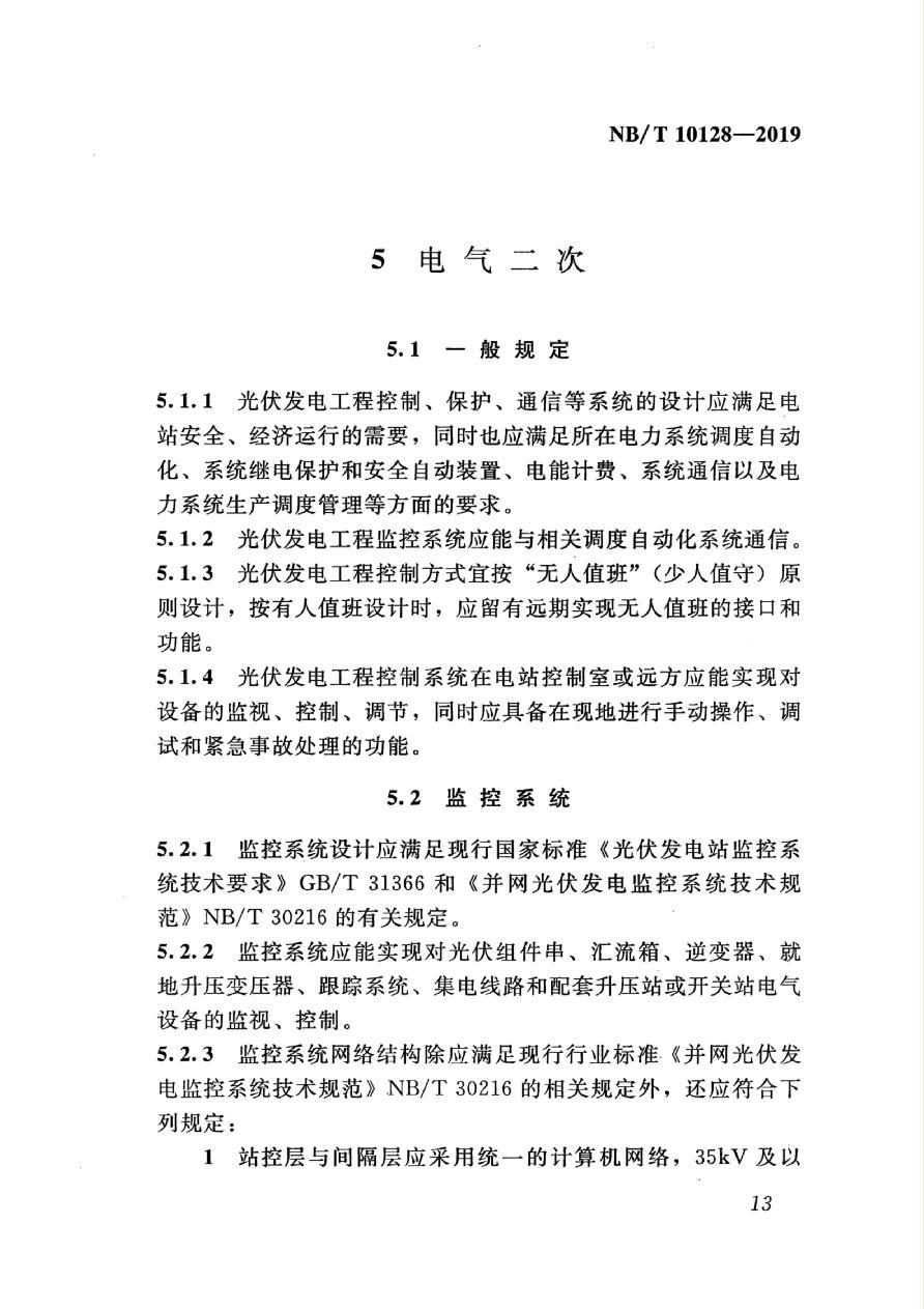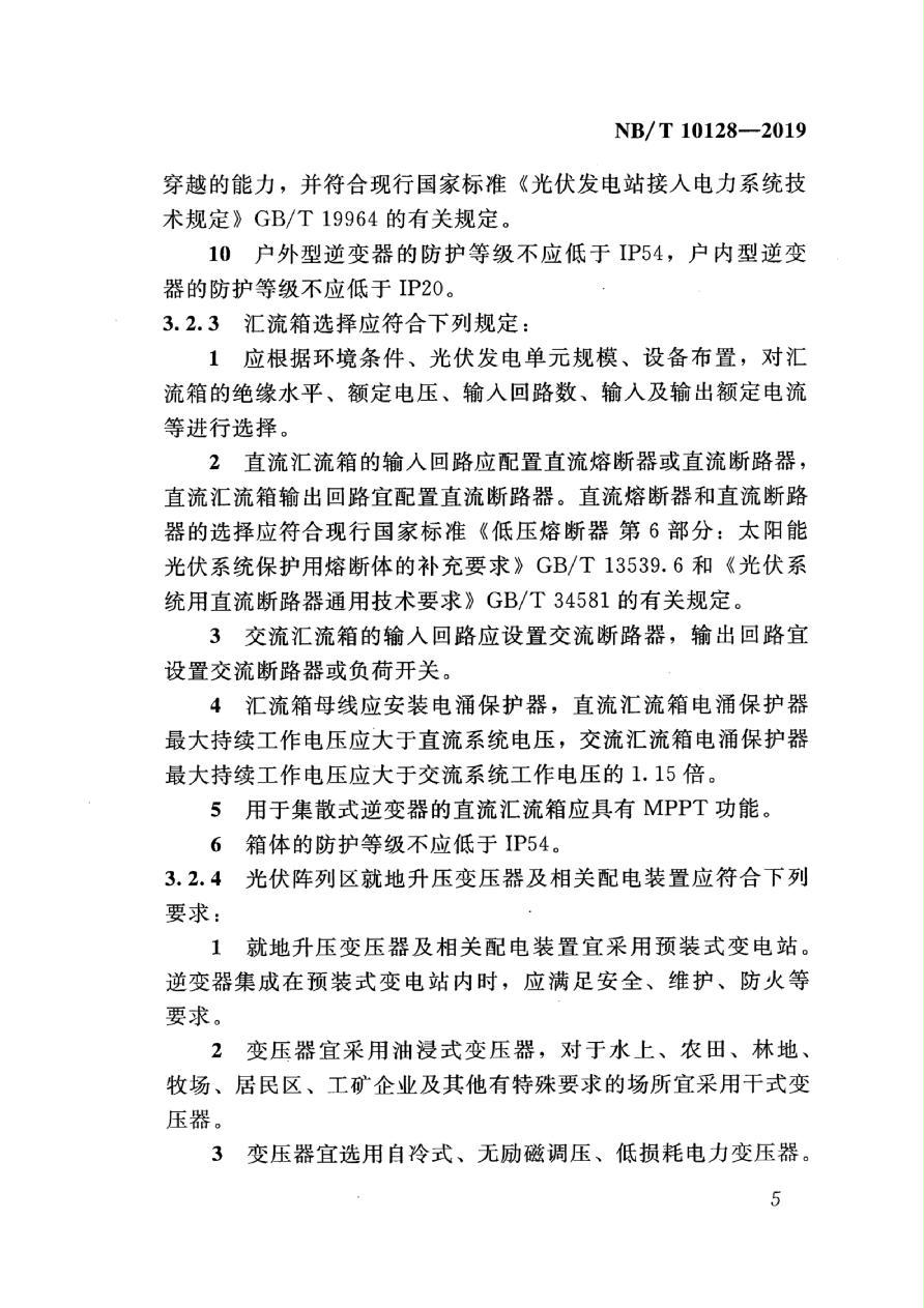 NB/T10128-2019《光伏发电工程电气设计规范》