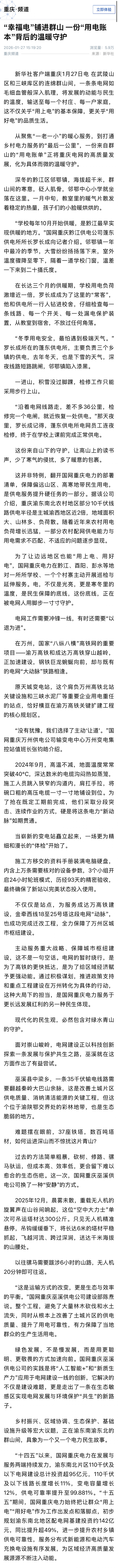 【新华社】“幸福电”铺进群山 一份“用电账本”背后的温暖守护