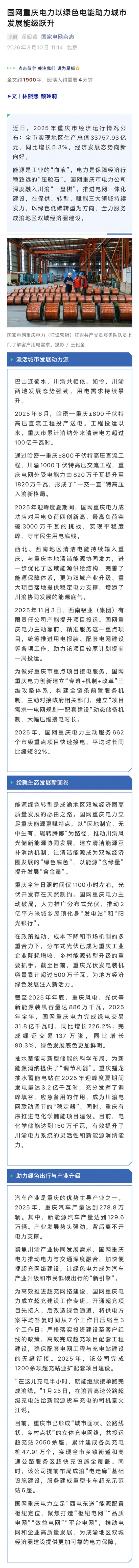 【国家电网杂志】国网重庆电力以绿色电能助力城市发展能级跃升