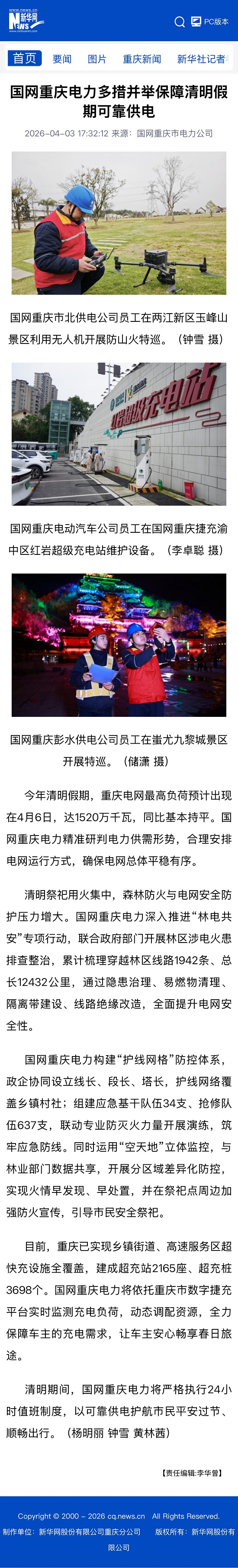 【新华网】国网重庆电力多措并举保障清明假期可靠供电