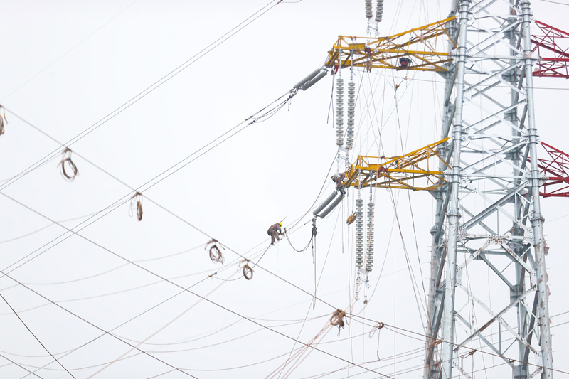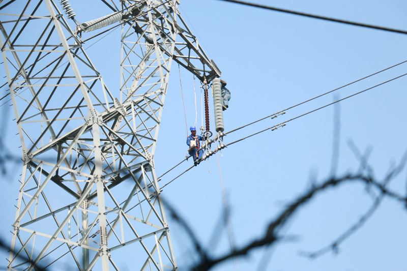 国网合川供电公司员工在220千伏双思线改造现场为21号塔更换绝缘子。(刘思言 摄)
