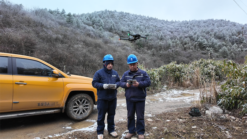 国网奉节供电公司员工利用无人机监测10千伏九回线覆冰情况。(杨嵛杰 摄)