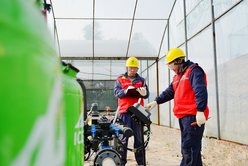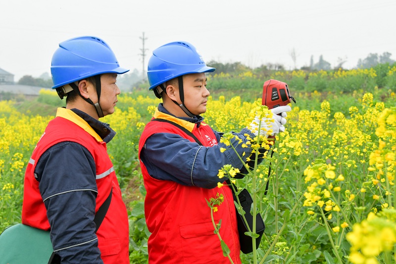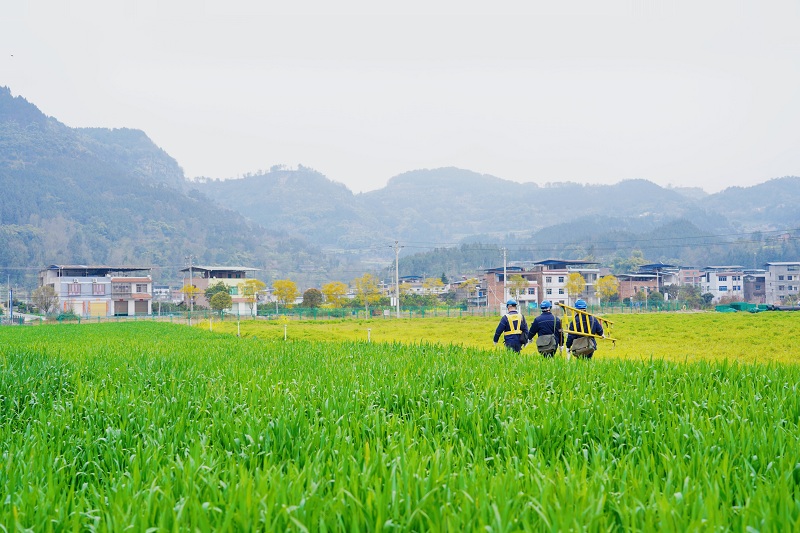 国网永川供电公司员工在荣昌仁义高标准农田检查配电设施。(赖小龙 摄)