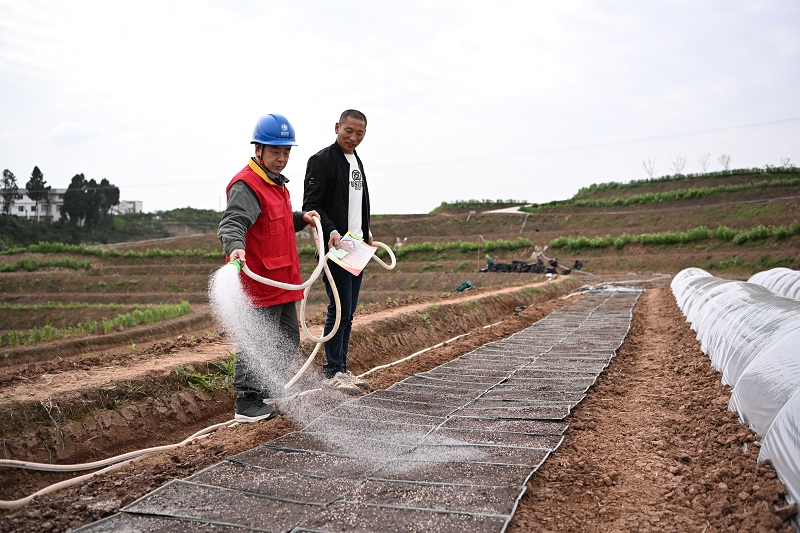 国网重庆市北供电公司统景供电所员工走进田间地头宣传安全用电知识。(向江微 摄)