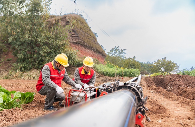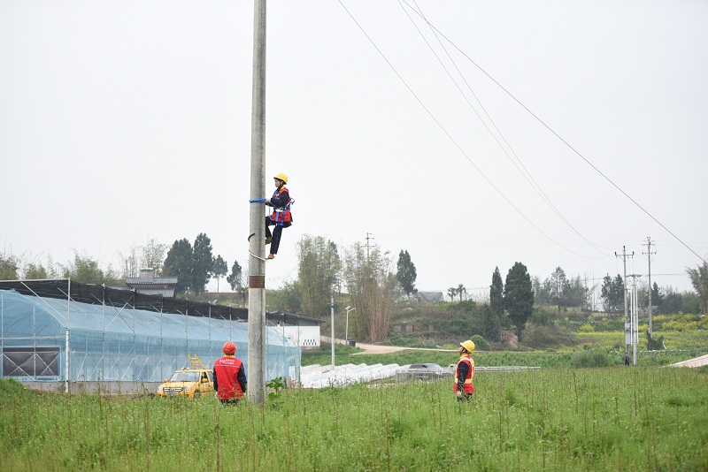 国网长寿供电公司员工为辖区农户用电线路开展增容改造,提升春耕供电质量。(况敏 摄)