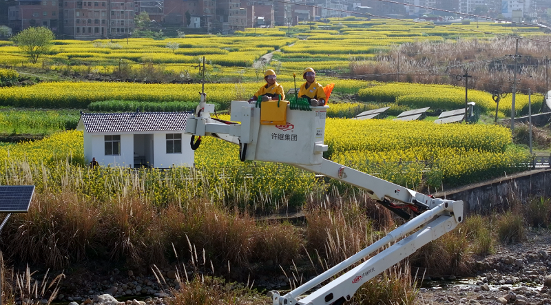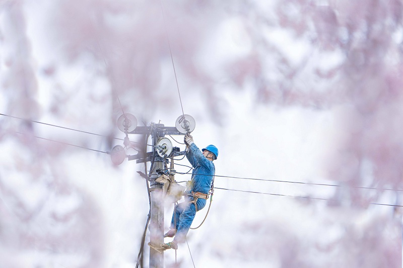 国网巫山供电公司员工在福田10千伏线路开展带电作业,护航春耕用电。(尹瑶瑶 摄)