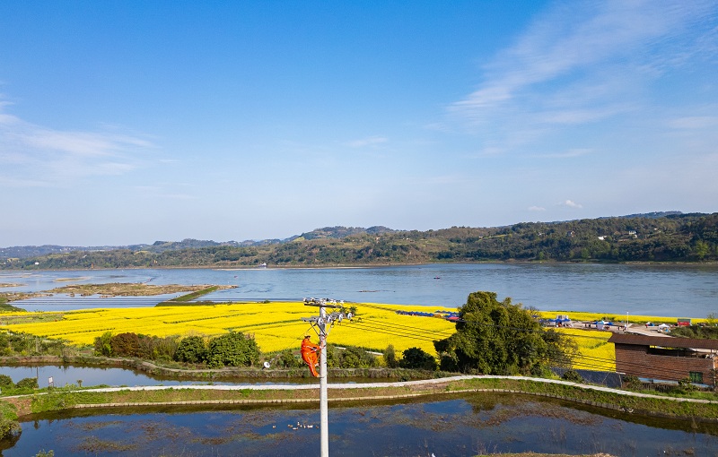 在永川区朱沱镇长江边,国网永川供电公司员工正在开展10千伏线路检修。(赖小龙 摄)