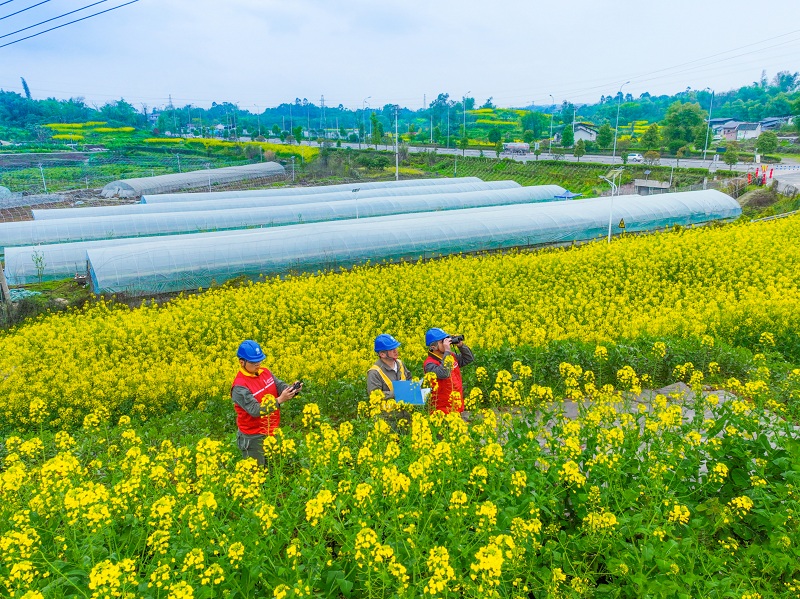 国网璧山供电公司员工在青杠街道高家村2组对10千伏青来线来高支线进行巡视检查。(蒋佩 摄)