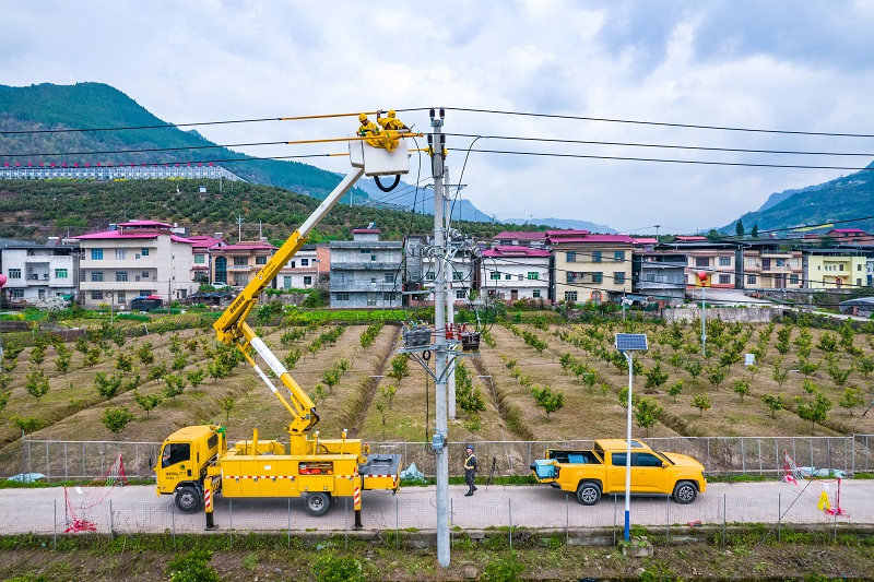 国网彭水供电公司黄家供电所员工在龙塘乡双龙村10千伏黄龙线龙四支线巡线。(储潇 摄)