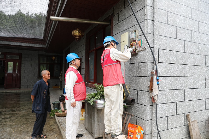 国网酉阳供电公司员工在酉酬镇溪口村居民家走访检查线路,保障居民安全用电。(庞涛丹 摄)