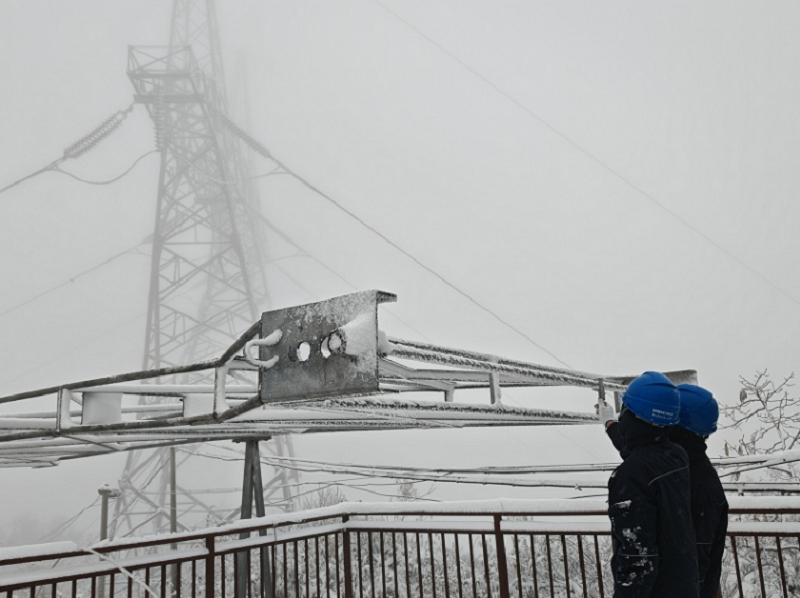 在城口县,国网城口供电公司迅速启动雨雪天气保电应急预案,采用“线上监测+线下核查”巡检方式,通过输电全景平台实时查看线路的覆冰等数据,并组织运维人员到三排山观冰站等区域,对220千伏华城线开展巡检和覆冰观测。