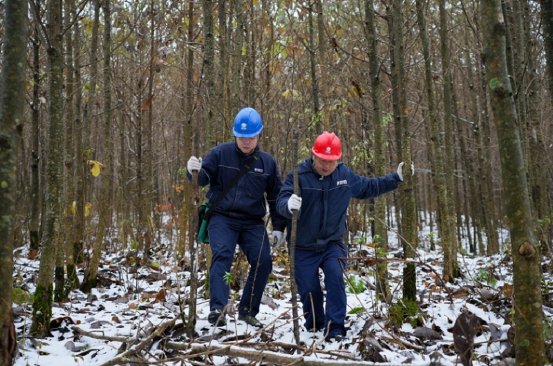 11月17日,国网开州供电公司员工前往10千伏满双线开展寒潮天气线路特巡。(安姚鑫 摄)